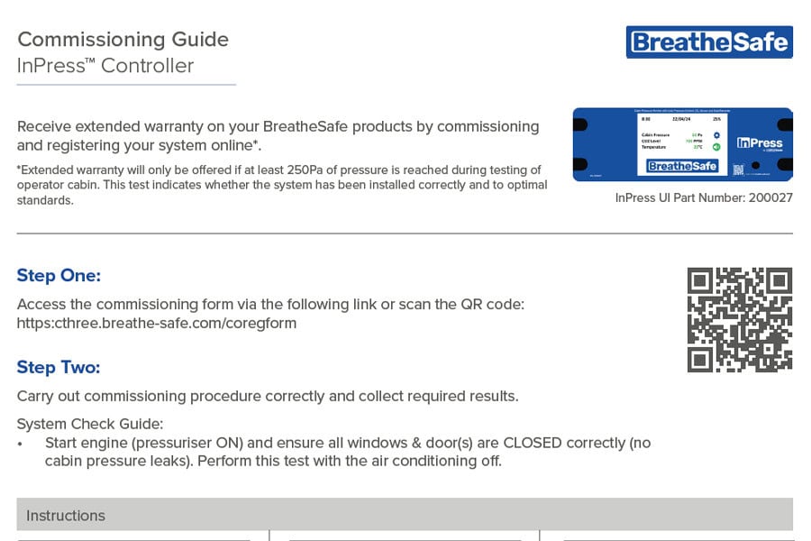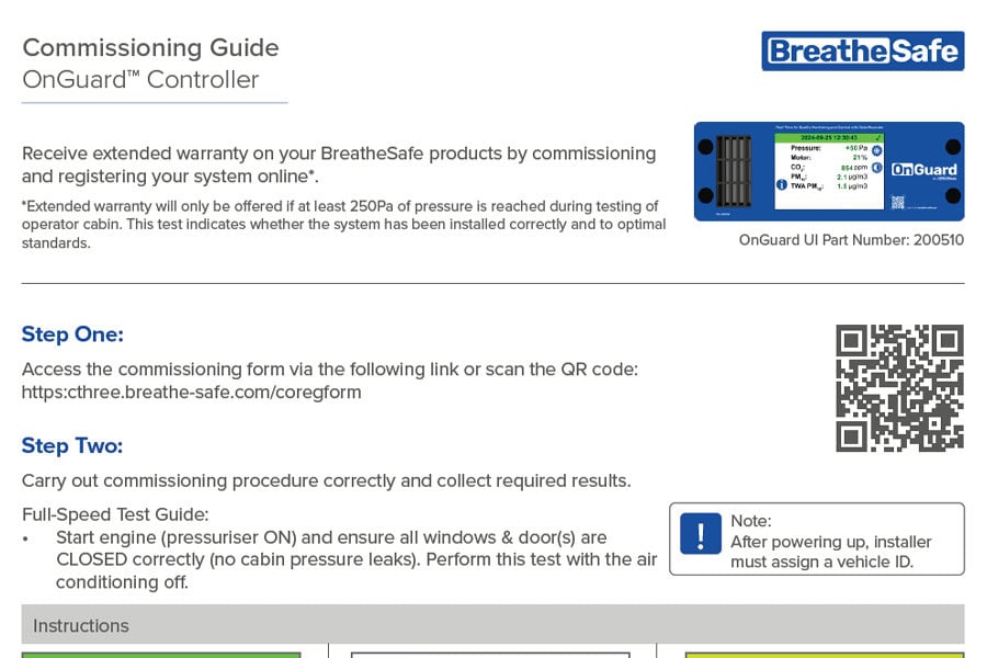 Identify the controller installed on your machine and follow the commissioning instructions below to submit a commissioning record and obtain BreatheSafe certification for your machine.