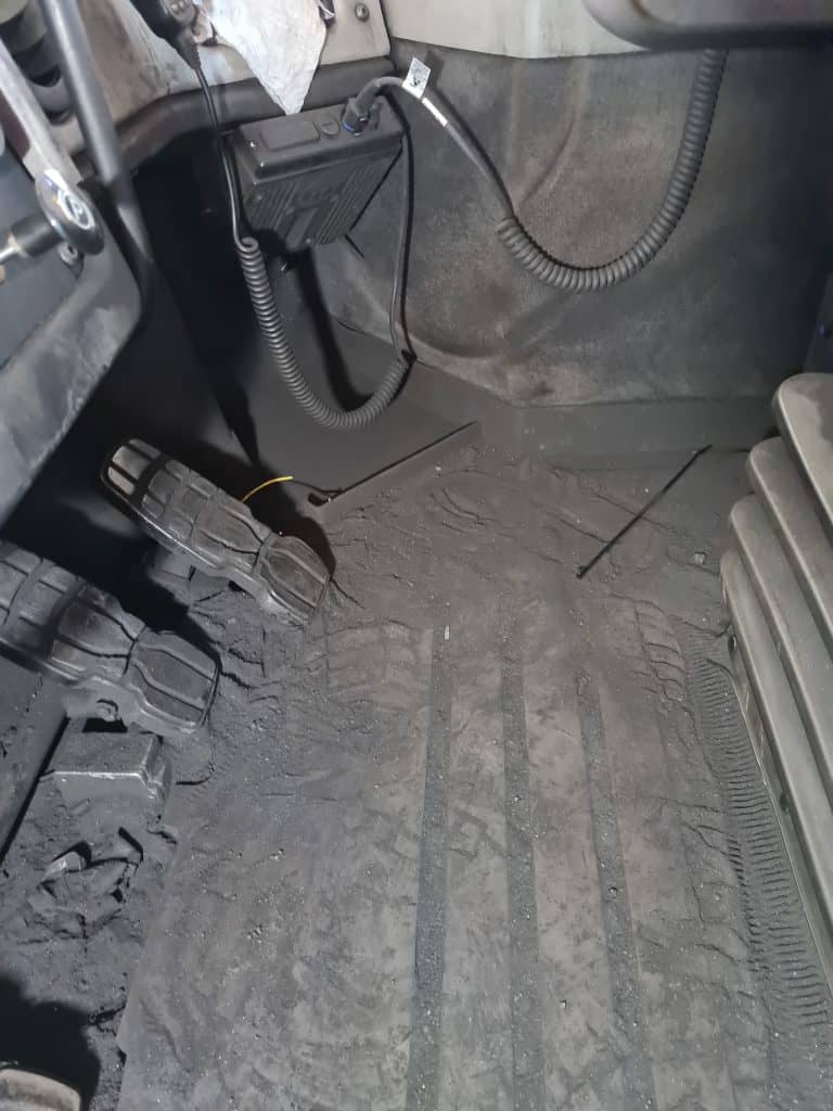 Shows typical cabin dust build-up from boots and clothing, vacuum before operation to stop it becoming airborne and clogging your HVAC filters.