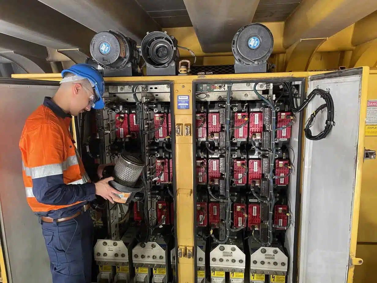 Cleaning with compressed air has ceased/worker exposure to mine dust diminished! The cabinet is maintaining a significantly reduced dust load. Internal temperature maintained relevant to ambient. Components/wiring easily visible for fault finding. Minimised static dust on components – Extended component life. Heavily reduced downtime for maintenance/repair costs. The system was installed in November 2020 and has done over 3715 hours of service. The system has been inspected at 1000, 1500, 2230 and 2800 hours and is still running the original filters. System capacity maintains a 57% load with no drop in sealing efficiency after 3715 hours. Max pressure test dropped 390 Pa to a total of 810 Pa– consistent with filter loading/truck voltage & door seals.